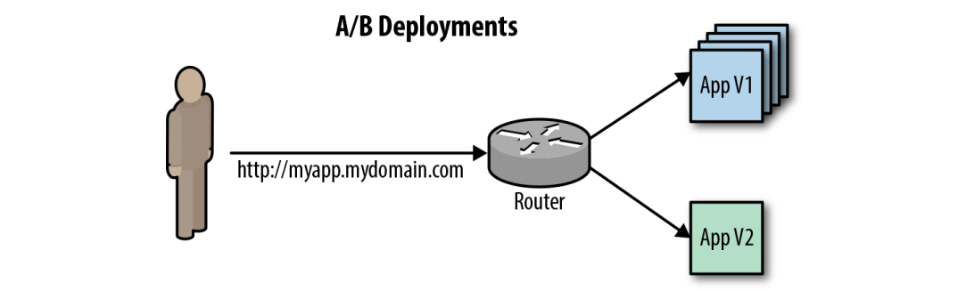 作为部署的一部分。假如你有一个设想,可以执行A/B部署,测试你的设想是对还是错(如果错,可以方便的回滚到你原来版本的应用A;如果对,可以将流量都导入新版本应用B)。