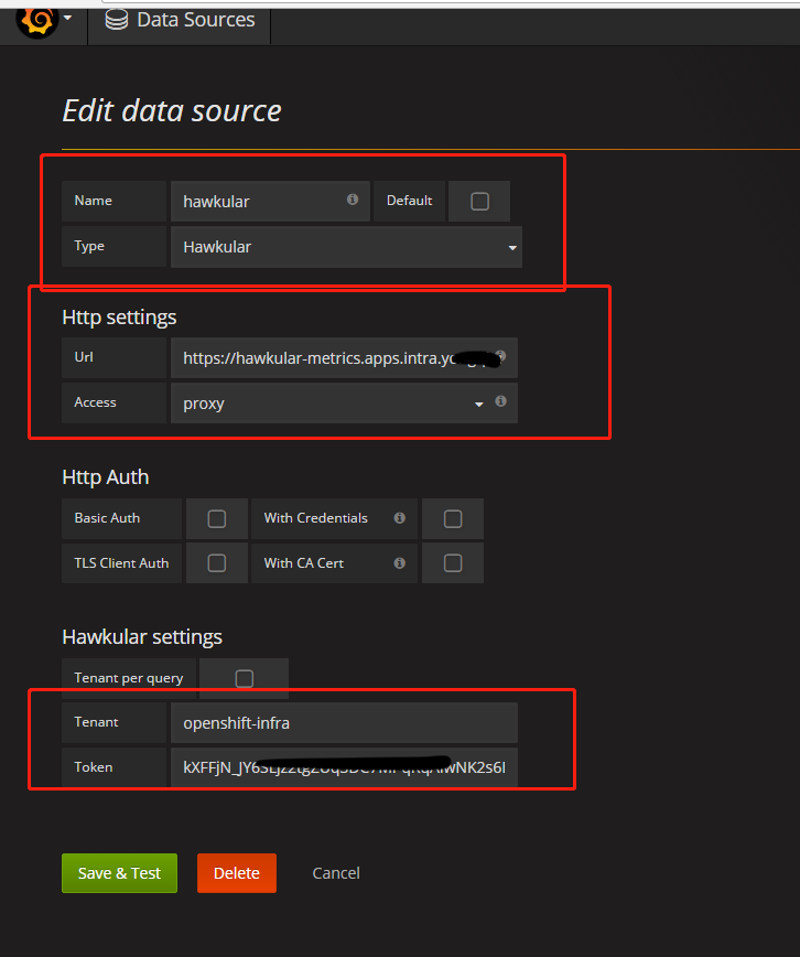 【openshift教程-10.2】【监控-接入Grafana】 Published by Connor Xu August 25th, 2019 grafana添加插件: grafana-cli plugins install hawkular-datasource systemctl restart grafana-server https://hawkular-metrics.apps.intra.XXXXXXXXXX.com/hawkular获取token 参考地址: http://www.hawkular.org/docs/rest/rest-metrics.html https://grafana.com/plugins/hawkular-datasource Openshift