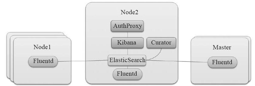 在每个node上各运行一个Flunetd容器,对本节点 /var/log 和 /var/lib/docker/containers/ 两个目录下的日志进行采集,然后汇总到elasticsearch集群,最后通过kibana展示。