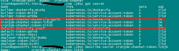 oc describe secret cronjob-shanhai-token-trtvh