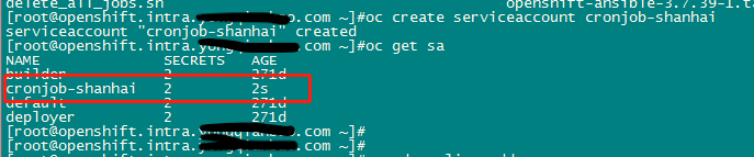 oc create serviceaccount cronjob-shanhai
