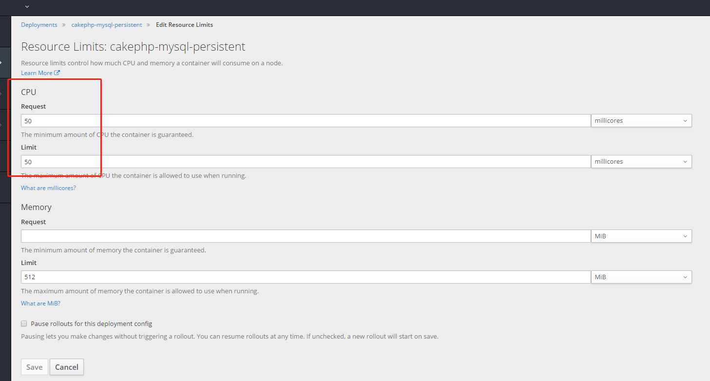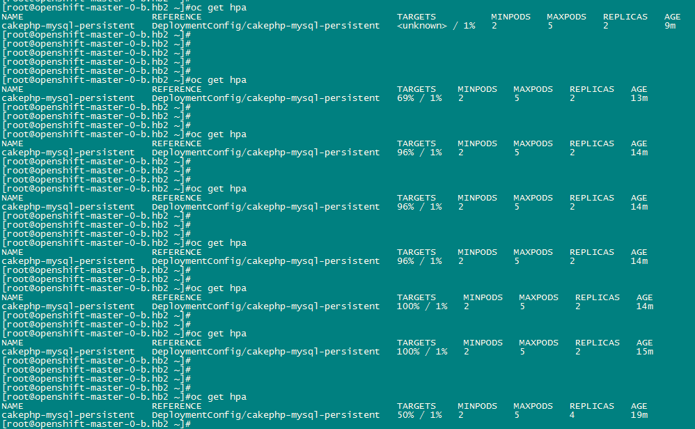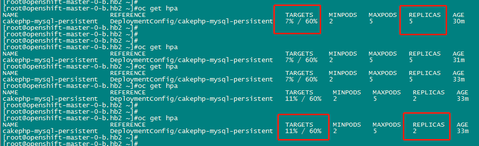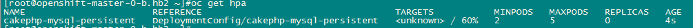 oc autoscale deploymentconfig cakephp-mysql-persistent --max=5 --min=2 --cpu-percent=60