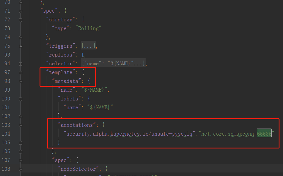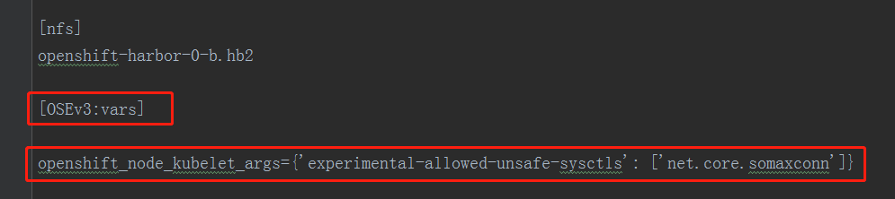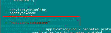 【openshift教程-17】【内核参数调优】 Published by Connor Xu August 25th, 2019 官方文档:https://docs.openshift.org/latest/admin_guide/sysctls.html 例如支持队列个数参数调优 vim /etc/origin/node/node-config.yaml experimental-allowed-unsafe-sysctls:- "net.core.somaxconn" systemctl restart origin-node.service 在配置模板中,添加systcl调优的注释 或者在安装过程中制定kubernetes的参数: Openshift