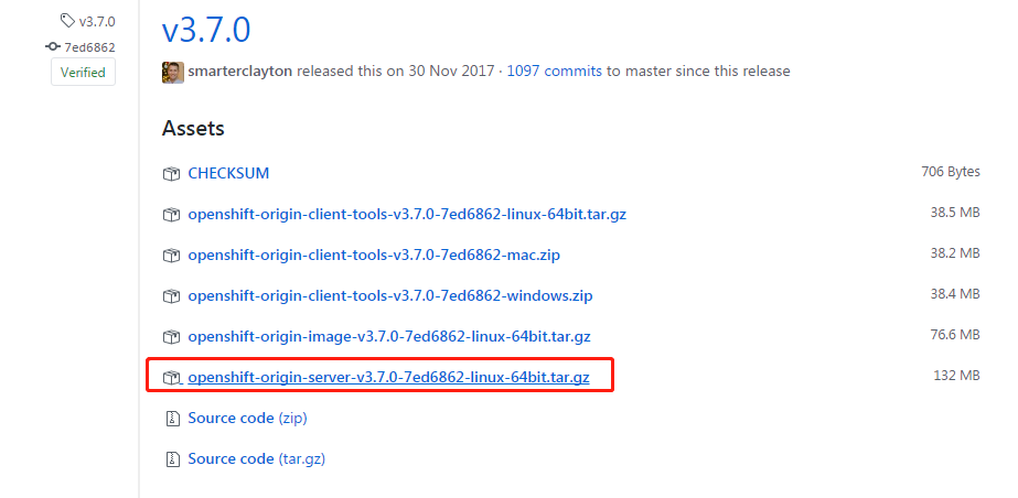 tar -zxf openshift-origin-server-v3.7.0-7ed6862-linux-64bit.tar.gz